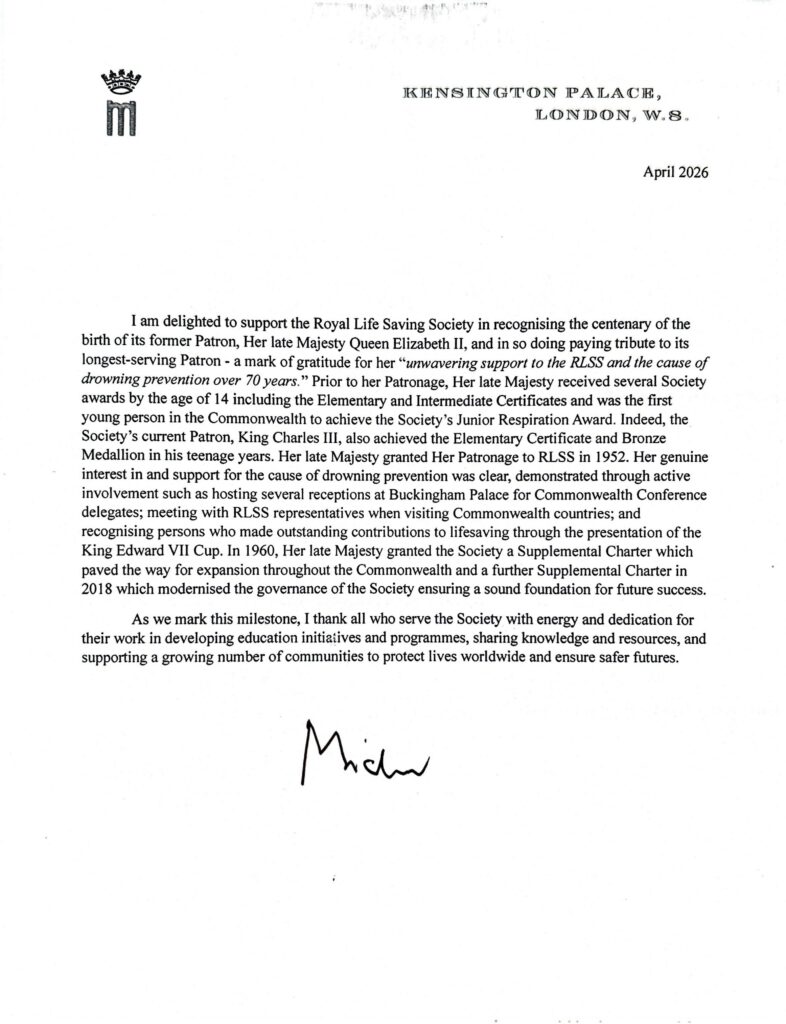 For more information visit; The Royal Family – Royal Life Saving Society Commonwealth